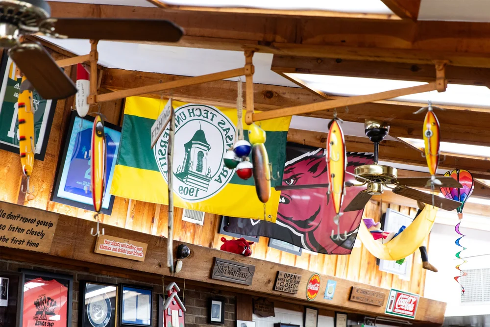 A couple of six-packs in hand, I made the short drive back to Russellville and stopped for a burger and fries at the legendary Feltner’s Whatta-Burger. Located across the road from the Arkansas Tech campus, the burger dive has been in business since 1967. I visited the place when I was a teenager, and still remember trying (unsuccessfully) to put down a quad-meat burger with cheese. The place hasn’t changed much over the decades, but a sign of the times might be the newly added veggie burger on a menu built for carnivores.