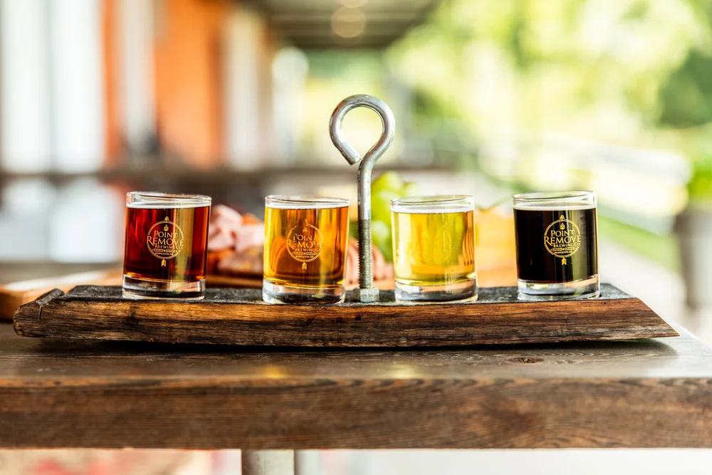 It was still morning, and with a 6 p.m. kickoff I had time to head to Morrilton (pop. 7,000) to check out Point Remove. The brewery opened in 2020 in a former Coca-Cola bottling plant. It distributes a few styles across Arkansas, including a Lager, a Pilsner, and an IPA. I arrived after the posted opening time but the doors were still locked. I took a seat on the patio and enjoyed a cool breeze while I waited. Soon two employees arrived to open the taproom.